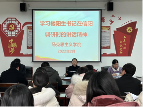 会上,祁欢院长首先传达贯彻省委书记楼阳生在信阳调研时的讲话指示精神,动员马院全体党员教师进一步坚定信心、鼓足干劲,埋头苦干、奋勇争先,践行“两个更好”、锚定“两个确保”,奋力开创“美好生活看信阳”新局面。然后领学《蔡松涛同志在全市党史学习教育总结会议上的讲话》精神,并对马院党史学习教育工作开展情况进行了总结,对进一步巩固拓展党史学习教育成果作了安排部署。