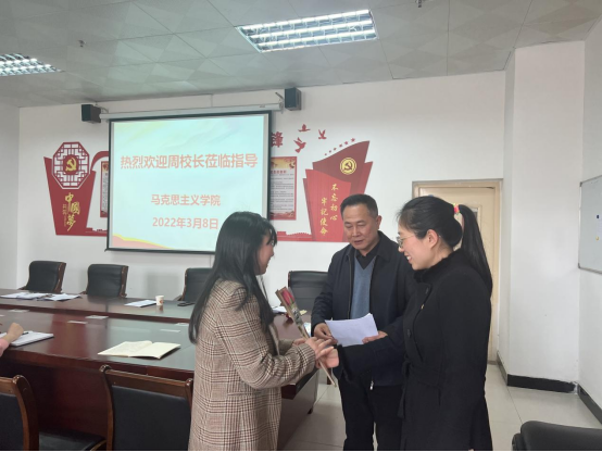 最后,周校长为马院全体女教职工送上鲜花和“三八”妇女节的节日问候,祝福她们节日快乐,生活幸福。(通讯员:肖园丽 曹涌)