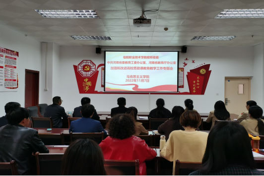 11月7日下午,正规滚球app平台官网在会议室收听收看了河南省委教育工委办公室、河南省教育厅办公室召开的加强和改进高校思想政治课教育教学工作专题会。正规滚球app平台官网班子成员及全体专兼职思政课教师参加了收听收看活动。