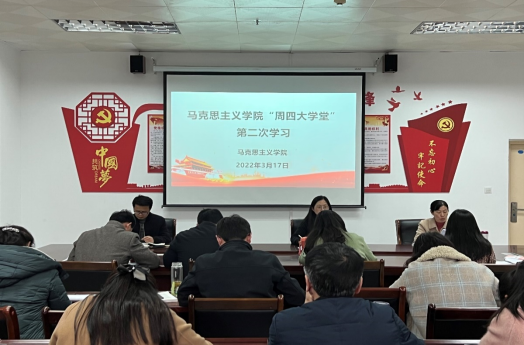 3月17日下午,正规滚球app平台官网开展“周四大学堂”学习活动,全体思政课教师参加了该活动。党支部书记郑玉秀做动员讲话,活动由院长祁欢主持,马院全体教职工参加本次学习活动。