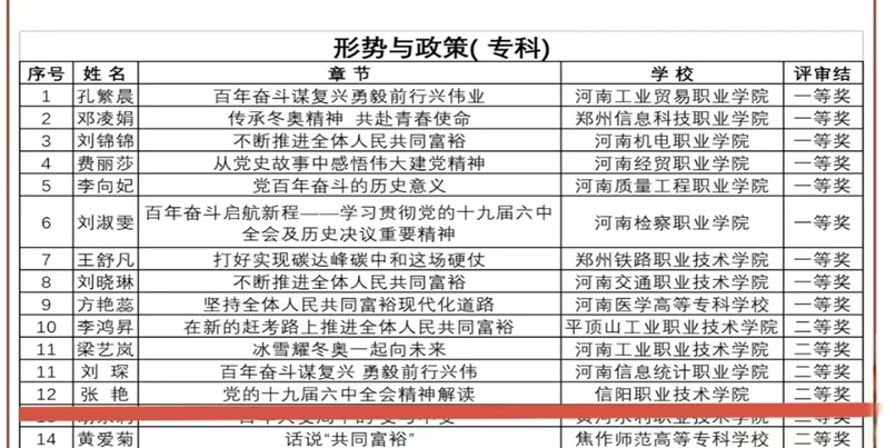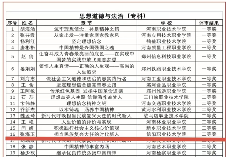 根据中共河南省委教育工委办公室、河南省教育厅办公室《关于开展全省高校思想政治理论课示范“金课”评选活动的通知》(教思政函〔2022〕255号)要求,经各高校申报、资格审查、专家评审、综合评议等环节,正规滚球app平台官网教师在河南省高校思想政治理论课示范“金课”活动中喜获佳绩,张艳、肖园丽、张海玉三位教师在此次活动中均荣获二等奖。