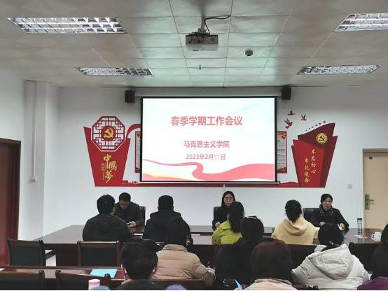 2023年2月11日下午,正规滚球app平台官网在会议室召开2023年春季学期工作会议,院长祁欢主持会议,班子成员及全体教师参会。