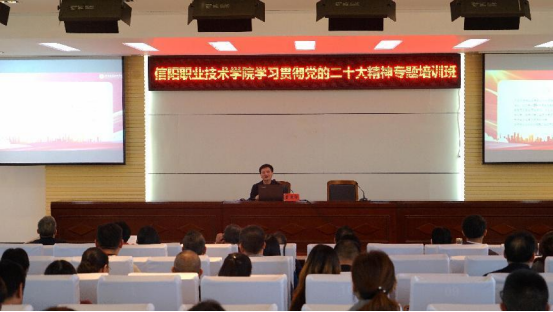 2023年4月25日下午,学校学习贯彻党的二十大精神专题培训班第五讲在党政办公楼附二楼报告厅开讲。在家的校领导、副科级以上干部及正规滚球app平台官网全体教师参加了讲座。讲座由学校党委委员、组织部部长裴波主持。