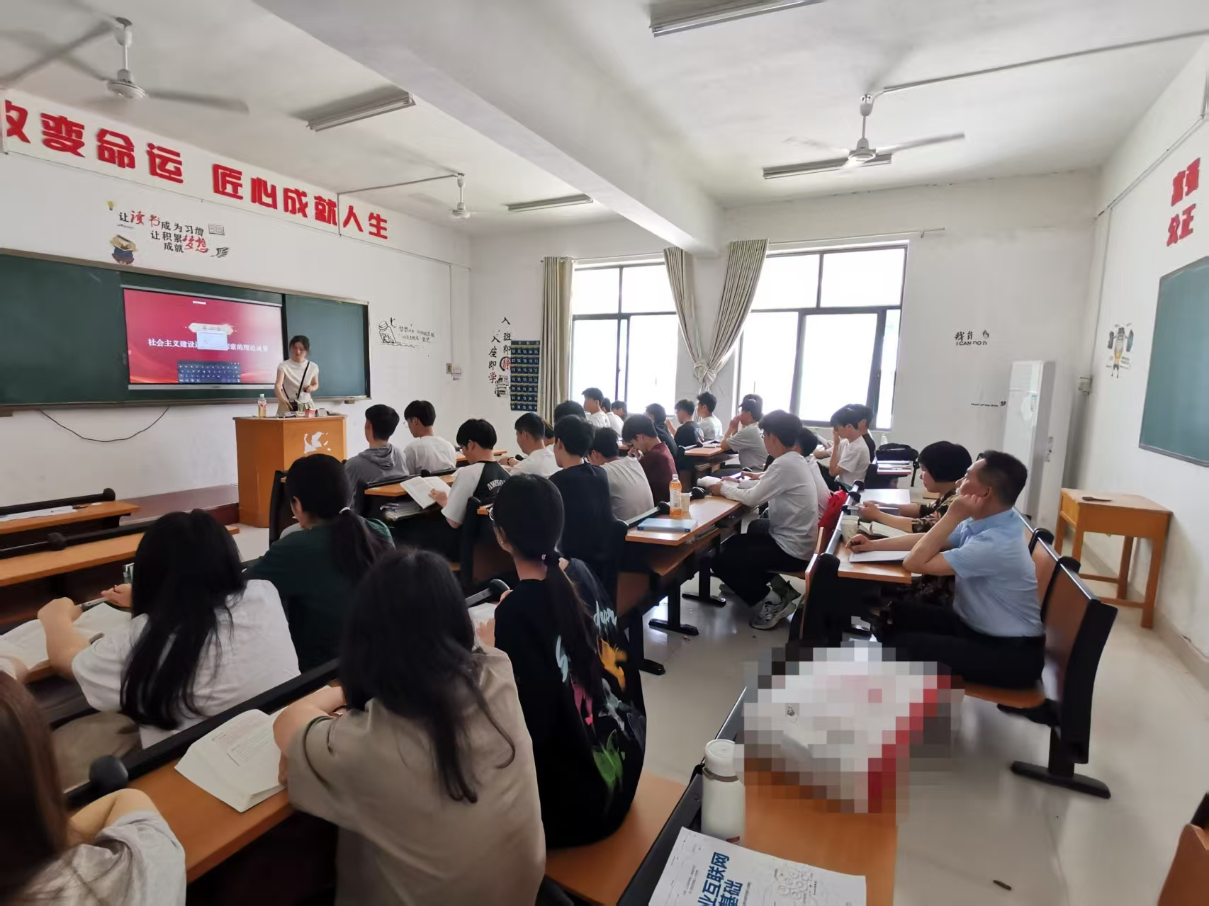 在"社会主义道路初步探索的理论成果" 主题教学活动中,陈金凤老师综合运用案例剖析、小组研讨等多元化教学方法,通过启发式教学引导学生深入探究理论内涵,课堂教学设计逻辑严谨、内容详实,学生在互动环节中积极思辨,形成了浓厚的学习氛围。两位校领导全程参与听课,细致观察教学过程,详实记录课堂情况,全面掌握教学动态。