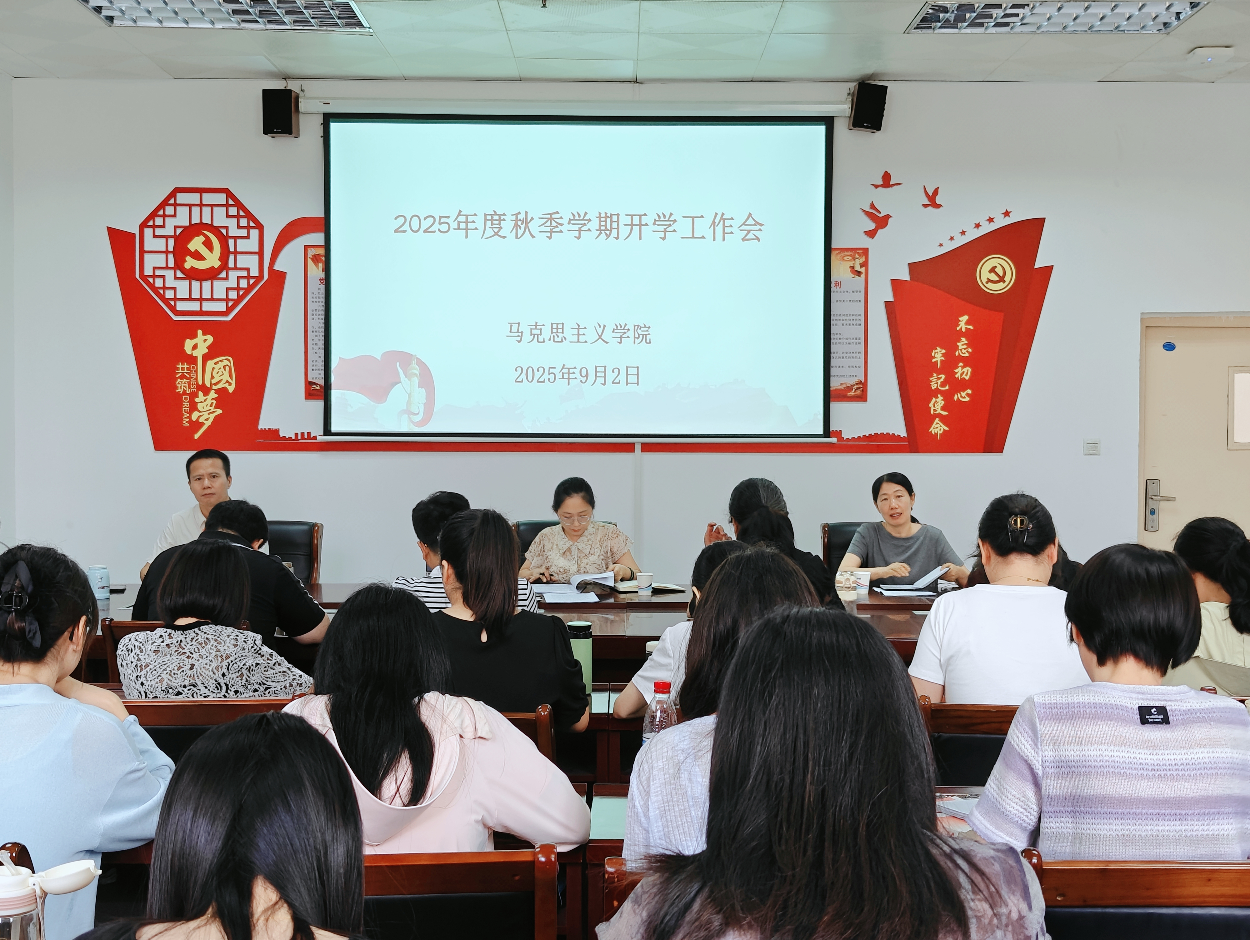 新学期伊始,为确保各项工作平稳有序开展,9月2日上午,正规滚球app平台官网召开2025年秋季学期开学工作部署会,马院全体教师参会,会议由学院党支部书记郑玉秀主持。