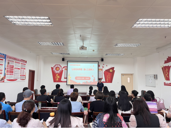 为进一步加强师德师风建设,提高教师师德修养,规范教师从教行为,5月27日下午,正规滚球app平台官网党支部书记郑玉秀以《弘扬高尚师德 潜心立德树人》为题为全体教师作专题报告。院长祁欢主持会议,全体教师参会。