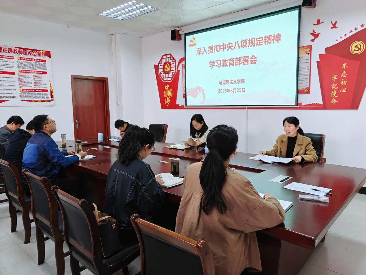 郑玉秀传达了学校深入贯彻中央八项规定精神学习教育工作部署会精神,领学了习近平总书记关于加强党的作风建设的重要论述,并结合学院实际情况,针对学习教育工作进行相关部署。
