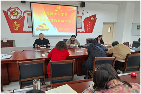 动员会前,马院连续召开两次党政领导班子会议,专题学习习近平总书记在党史学习教育大会上的重要讲话精神,传达学校党史学习教育动员大会精神,研究讨论马院党史学习教育工作方案。动员会后,马院将通过系列精彩活动的开展,在全校党史学习教育中学在前,做在先,为马院“十四五”工作开好局起好步,为学校“双高校”建设贡献力量。