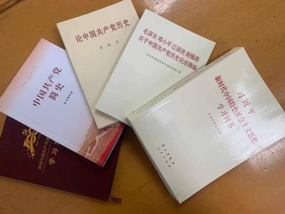 活动开始前,马院党史学习教育领导小组办公室为每位教师配发了《中国共产党简史》、《论中国共产党历史》、《习近平新时代中国特色社会主义思想学习问答》、《毛泽东邓小平 江泽民 胡锦涛关于中国共产党历史论述摘编》学习资料及学习笔记本。